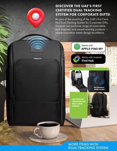 Modern and stylish with advance technology of dual findy system for tracking. Works with apple find my and google find hub with license. A two-tone design, multi-layer storage, scratch-resistant bottom, and versatile handles backpack that can fit 16" size of laptop. Has a strong magsafe N52 magnet phone holder on the strap perfect for the on the go.