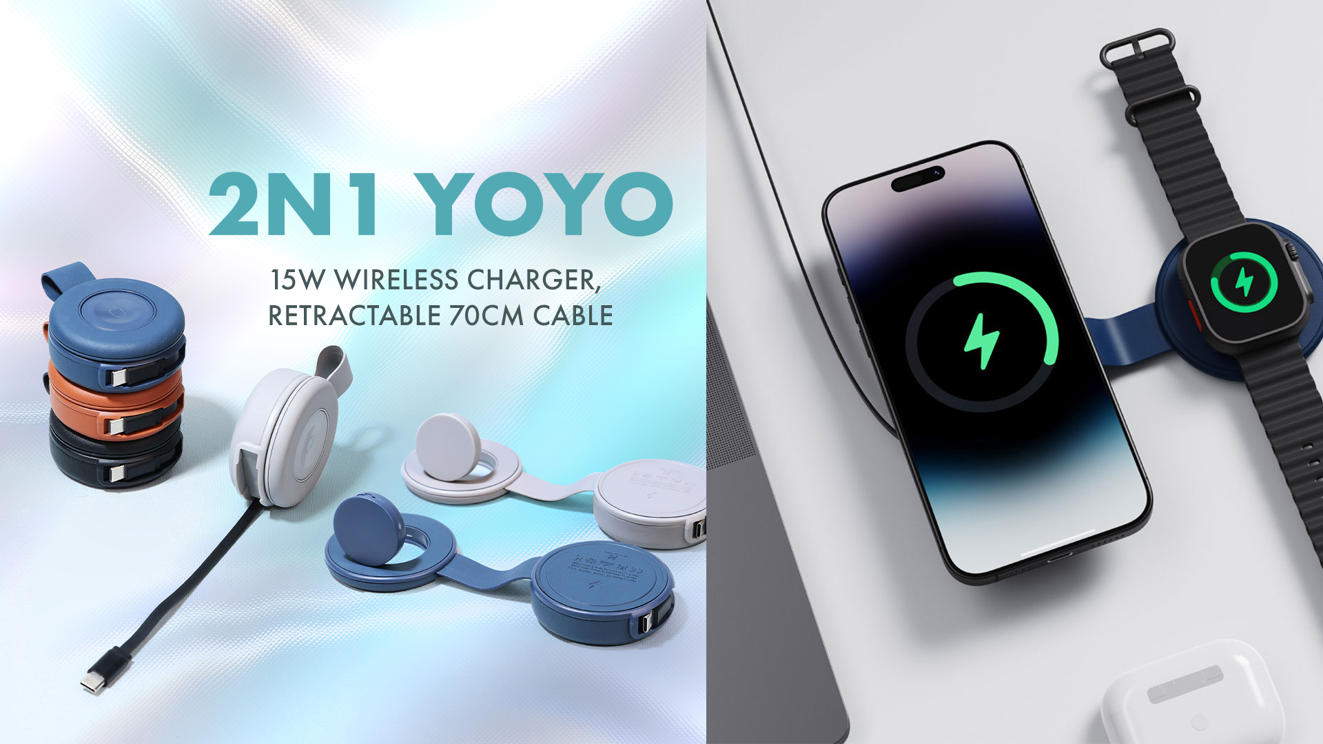 A smart all-in-one solution for power and portability made from recycled PU material. This sleek wallet-style power bank features 15W wireless charging, a built-in cable, and a convenient phone stand—all powered by a 5000mAh battery. Ideal for daily use or travel.
